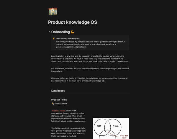 Inside is an onboarding that will guide you through every part of Product Knowledge OS.